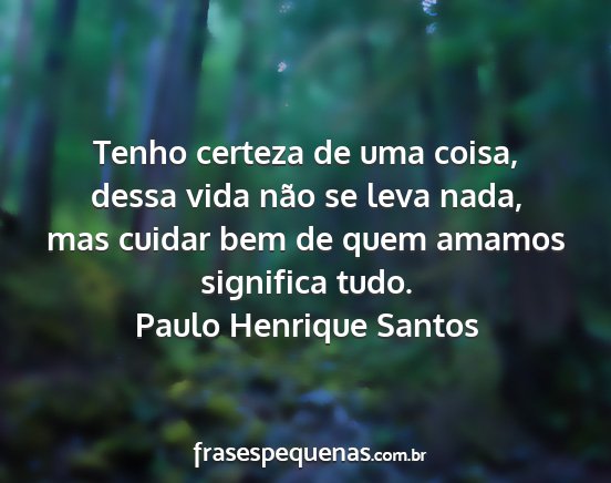 Tenho certeza de uma coisa, dessa vida não se leva nada, mas cuidar bem de quem amamos significa tudo.Paulo Henrique Santos
