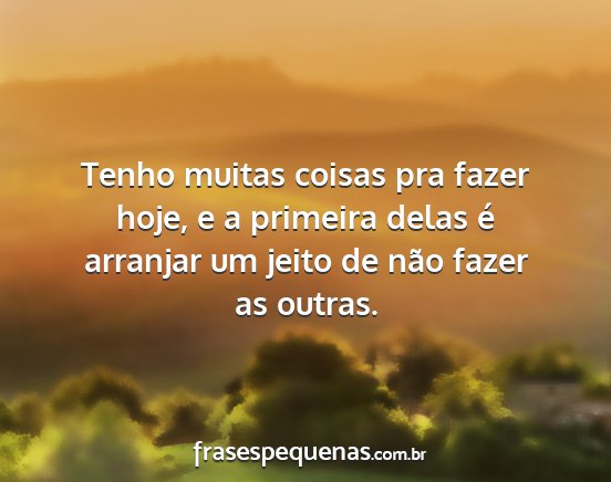Tenho muitas coisas pra fazer hoje, e a primeira delas é arranjar um jeito de não fazer as outras.