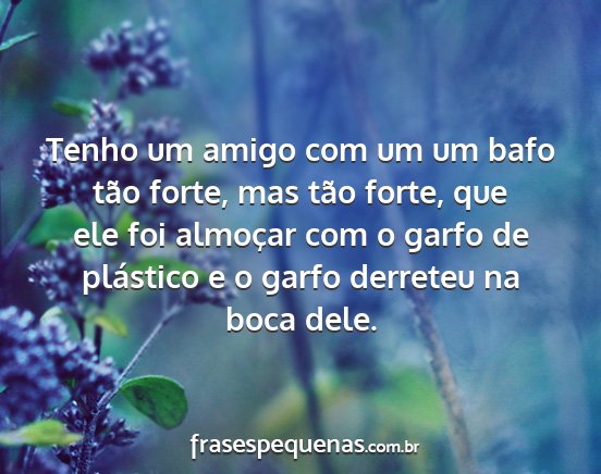 Tenho um amigo com um um bafo tão forte, mas tão forte, que ele foi almoçar com o garfo de plástico e o garfo derreteu na boca dele.
