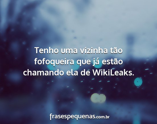 Tenho uma vizinha tão fofoqueira que já estão chamando ela de WikiLeaks.