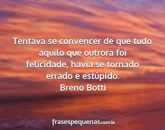 Tentava se convencer de que tudo aquilo que outrora foi felicidade, havia se tornado errado e estúpido.Breno Botti