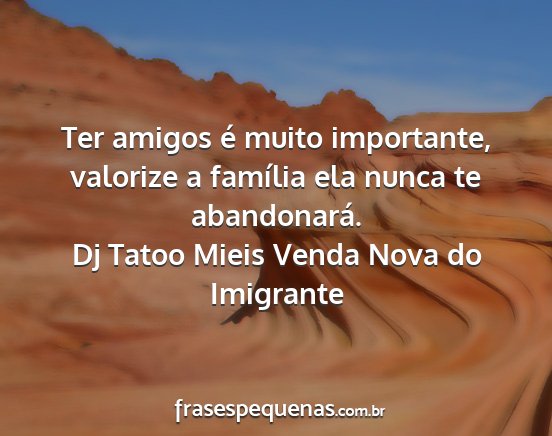 Ter amigos é muito importante, valorize a família ela nunca te abandonará.Dj Tatoo Mieis Venda Nova do Imigrante