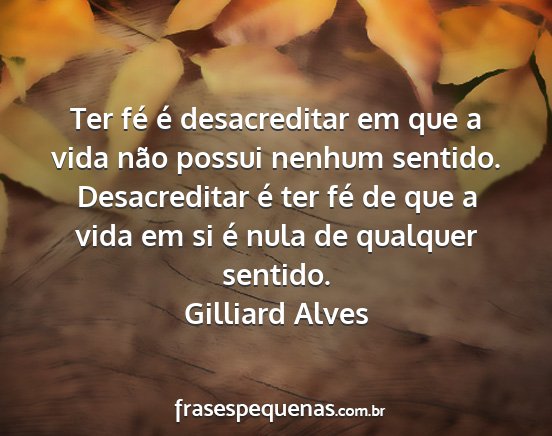 Ter fé é desacreditar em que a vida não possui nenhum sentido. Desacreditar é ter fé de que a vida em si é nula de qualquer sentido.Gilliard Alves