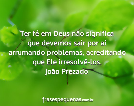 Ter fé em Deus não significa que devemos sair por aí arrumando problemas, acreditando que Ele irresolvê-los.João Prezado