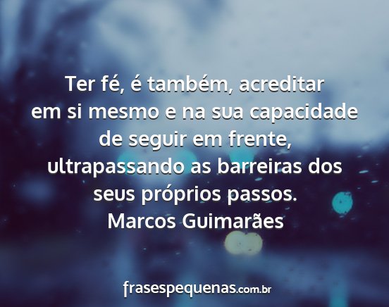 Ter fé, é também, acreditar em si mesmo e na sua capacidade de seguir em frente, ultrapassando as barreiras dos seus próprios passos.Marcos Guimarães