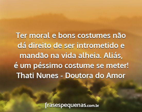 Ter moral e bons costumes não dá direito de ser intrometido e mandão na vida alheia. Aliás, é um péssimo costume se meter!Thati Nunes - Doutora do Amor