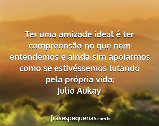 Ter uma amizade ideal é ter compreensão no que nem entendemos e ainda sim apoiarmos como se estivéssemos lutando pela própria vida;Julio Aukay