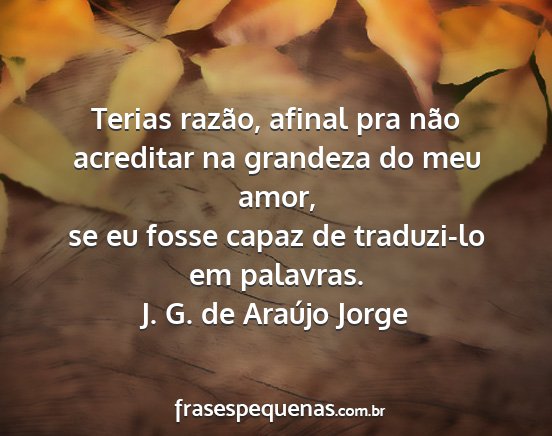 Terias razão, afinal pra não acreditar na grandeza do meu amor,