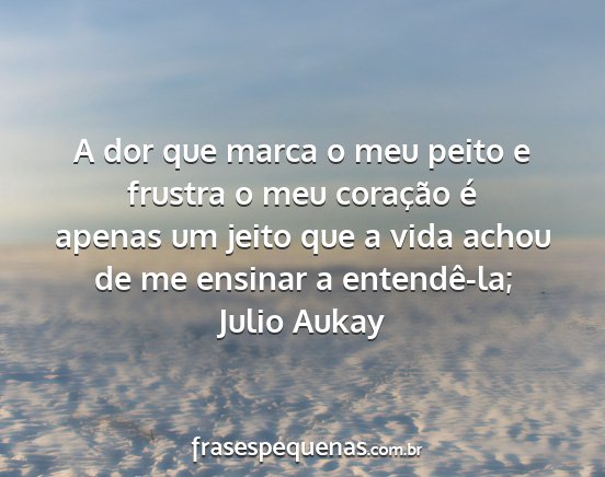 A dor que marca o meu peito e frustra o meu coração é apenas um jeito que a vida achou de me ensinar a entendê-la;Julio Aukay
