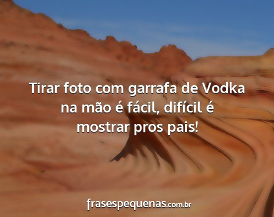 Tirar foto com garrafa de Vodka na mão...