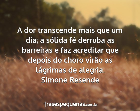 A dor transcende mais que um dia; a sólida fé derruba as barreiras e faz acreditar que depois do choro virão as lágrimas de alegria.Simone Resende