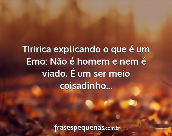 Tiririca explicando o que é um Emo: Não é homem e nem é viado. É um ser meio coisadinho...