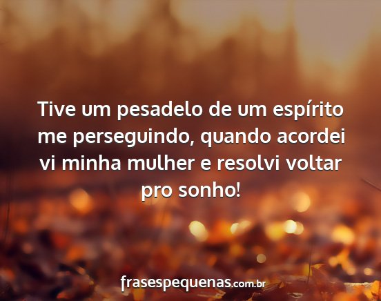 Tive um pesadelo de um espírito me perseguindo, quando acordei vi minha mulher e resolvi voltar pro sonho!