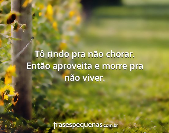 Tô rindo pra não chorar. Então aproveita e morre pra não viver.