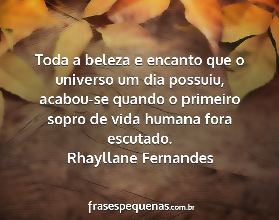 Toda a beleza e encanto que o universo um dia possuiu, acabou-se quando o primeiro sopro de vida humana fora escutado.Rhayllane Fernandes