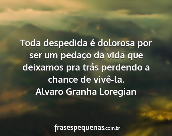Toda despedida é dolorosa por ser um pedaço da vida que deixamos pra trás perdendo a chance de vivê-la.Alvaro Granha Loregian
