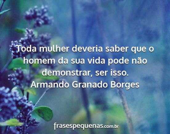 Toda mulher deveria saber que o homem da sua vida pode não demonstrar, ser isso.Armando Granado Borges