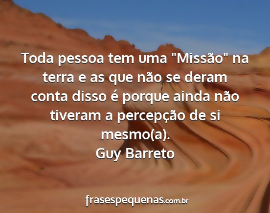 Toda pessoa tem uma "Missão" na terra e as que não se deram conta disso é porque ainda não tiveram a percepção de si mesmo(a).Guy Barreto