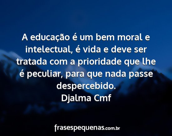 A educação é um bem moral e intelectual, é vida e deve ser tratada com a prioridade que lhe é peculiar, para que nada passe despercebido.Djalma Cmf