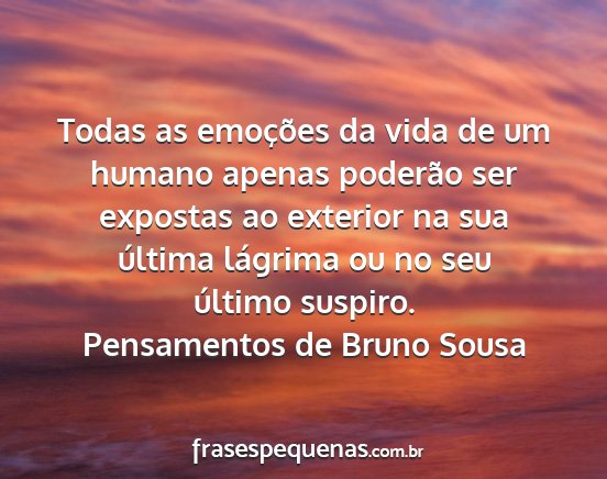Todas as emoções da vida de um humano apenas poderão ser expostas ao exterior na sua última lágrima ou no seu último suspiro.Pensamentos de Bruno Sousa