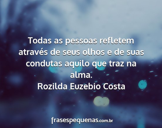 Todas as pessoas refletem através de seus olhos e de suas condutas aquilo que traz na alma.Rozilda Euzebio Costa