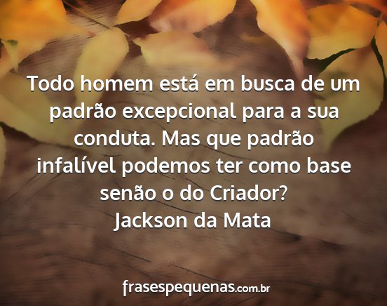 Todo homem está em busca de um padrão excepcional para a sua conduta. Mas que padrão infalível podemos ter como base senão o do Criador?Jackson da Mata