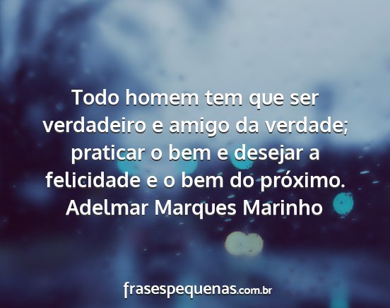 Todo homem tem que ser verdadeiro e amigo da verdade; praticar o bem e desejar a felicidade e o bem do próximo.Adelmar Marques Marinho