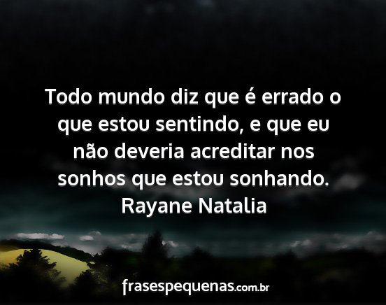 Todo mundo diz que é errado o que estou sentindo, e que eu não deveria acreditar nos sonhos que estou sonhando.Rayane Natalia
