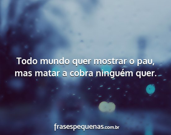 Todo mundo quer mostrar o pau, mas matar a cobra ninguém quer.