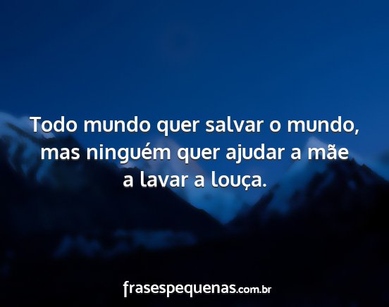 Todo mundo quer salvar o mundo, mas ninguém quer ajudar a mãe a lavar a louça.
