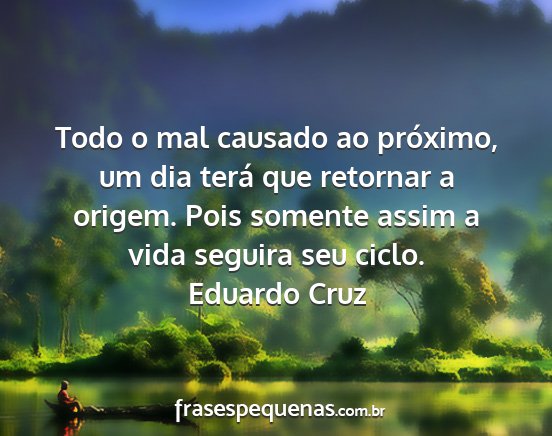 Todo o mal causado ao próximo, um dia terá que retornar a origem. Pois somente assim a vida seguira seu ciclo.Eduardo Cruz