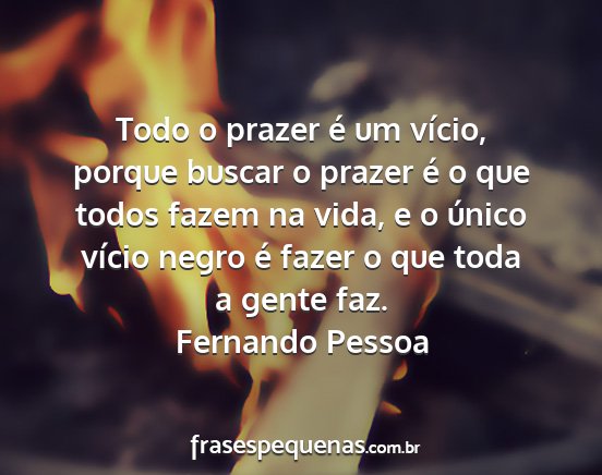 Todo o prazer é um vício, porque buscar o prazer é o que todos fazem na vida, e o único vício negro é fazer o que toda a gente faz.Fernando Pessoa