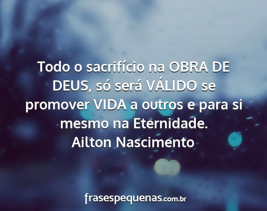 Todo o sacrifício na OBRA DE DEUS, só será VÁLIDO se promover VIDA a outros e para si mesmo na Eternidade.Ailton Nascimento