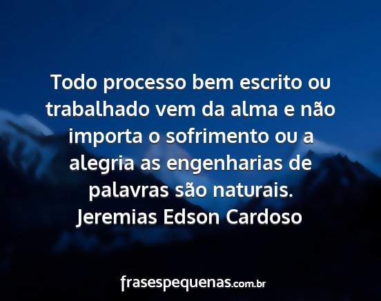 Todo processo bem escrito ou trabalhado vem da alma e não importa o sofrimento ou a alegria as engenharias de palavras são naturais.Jeremias Edson Cardoso