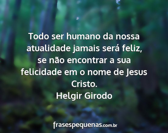 Todo ser humano da nossa atualidade jamais será feliz, se não encontrar a sua felicidade em o nome de Jesus Cristo.Helgir Girodo