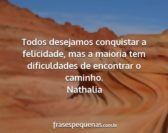 Todos desejamos conquistar a felicidade, mas a maioria tem dificuldades de encontrar o caminho.Nathalia