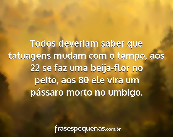 Todos deveriam saber que tatuagens mudam com o tempo, aos 22 se faz uma beija-flor no peito, aos 80 ele vira um pássaro morto no umbigo.