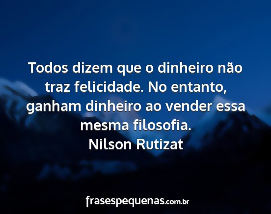 Todos dizem que o dinheiro não traz felicidade. No entanto, ganham dinheiro ao vender essa mesma filosofia.Nilson Rutizat