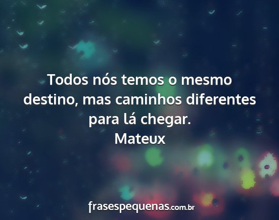 Todos nós temos o mesmo destino, mas caminhos diferentes para lá chegar.
