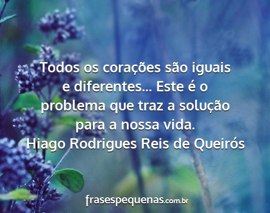 Todos os corações são iguais e diferentes... Este é o problema que traz a solução para a nossa vida.Hiago Rodrigues Reis de Queirós