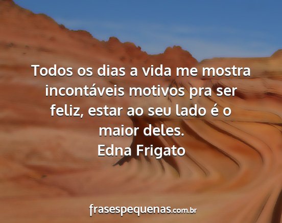 Todos os dias a vida me mostra incontáveis motivos pra ser feliz, estar ao seu lado é o maior deles.Edna Frigato