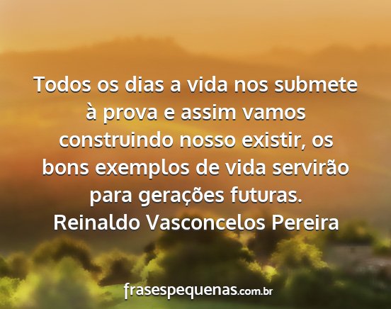 Todos os dias a vida nos submete à prova e assim vamos construindo nosso existir, os bons exemplos de vida servirão para gerações futuras.Reinaldo Vasconcelos Pereira