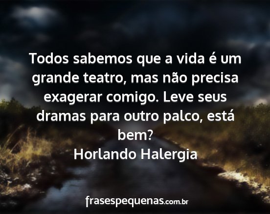 Todos sabemos que a vida é um grande teatro, mas não precisa exagerar comigo. Leve seus dramas para outro palco, está bem?Horlando Halergia