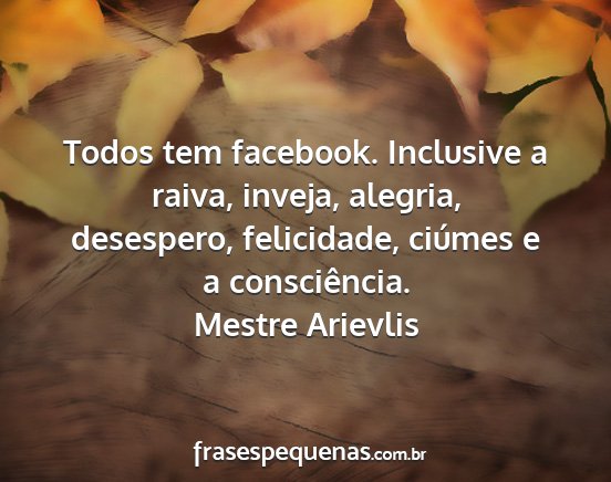 Todos tem facebook. Inclusive a raiva, inveja, alegria, desespero, felicidade, ciúmes e a consciência.Mestre Arievlis