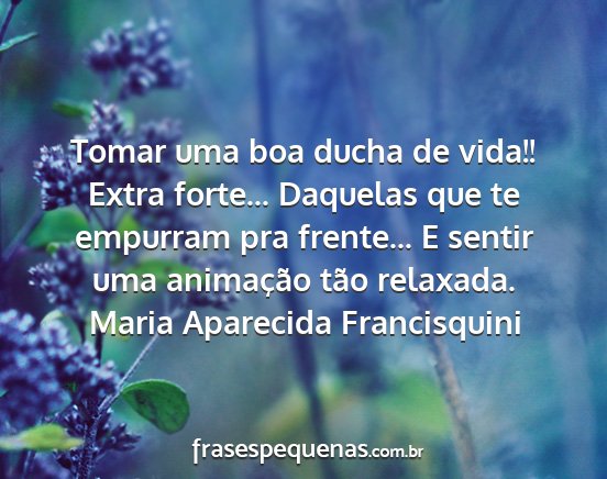 Tomar uma boa ducha de vida!! Extra forte... Daquelas que te empurram pra frente... E sentir uma animação tão relaxada.Maria Aparecida Francisquini