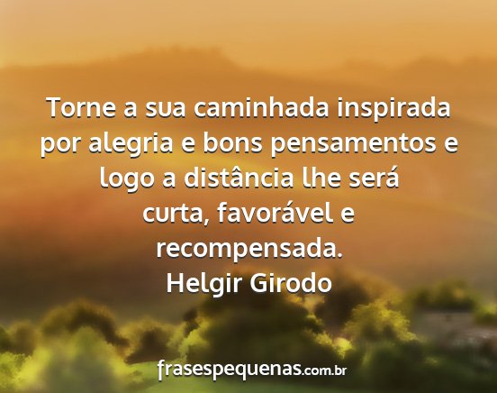 Torne a sua caminhada inspirada por alegria e bons pensamentos e logo a distância lhe será curta, favorável e recompensada.Helgir Girodo
