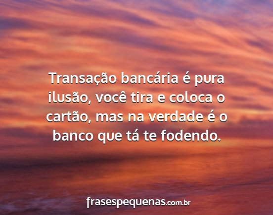 Transação bancária é pura ilusão, você tira e coloca o cartão, mas na verdade é o banco que tá te fodendo.