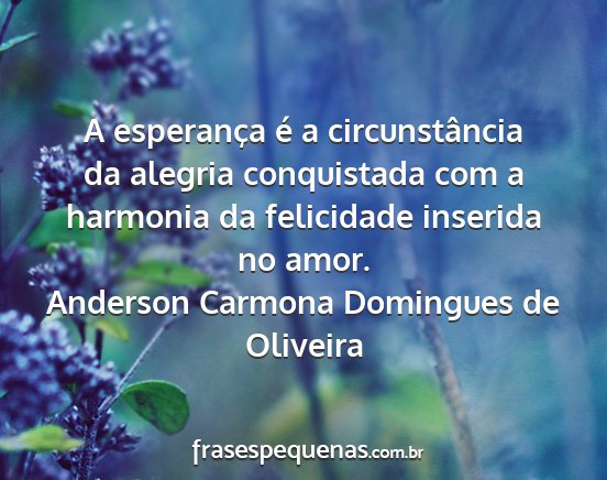 A esperança é a circunstância da alegria conquistada com a harmonia da felicidade inserida no amor.Anderson Carmona Domingues de Oliveira