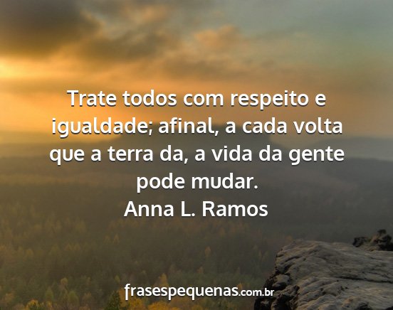 Trate todos com respeito e igualdade; afinal, a cada volta que a terra da, a vida da gente pode mudar.Anna L. Ramos