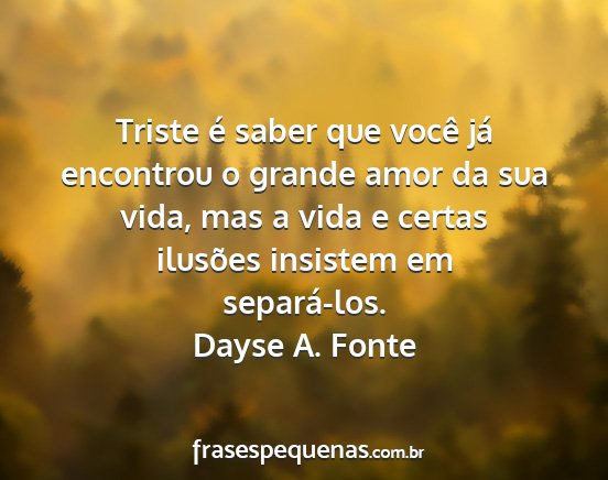 Triste é saber que você já encontrou o grande amor da sua vida, mas a vida e certas ilusões insistem em separá-los.Dayse A. Fonte